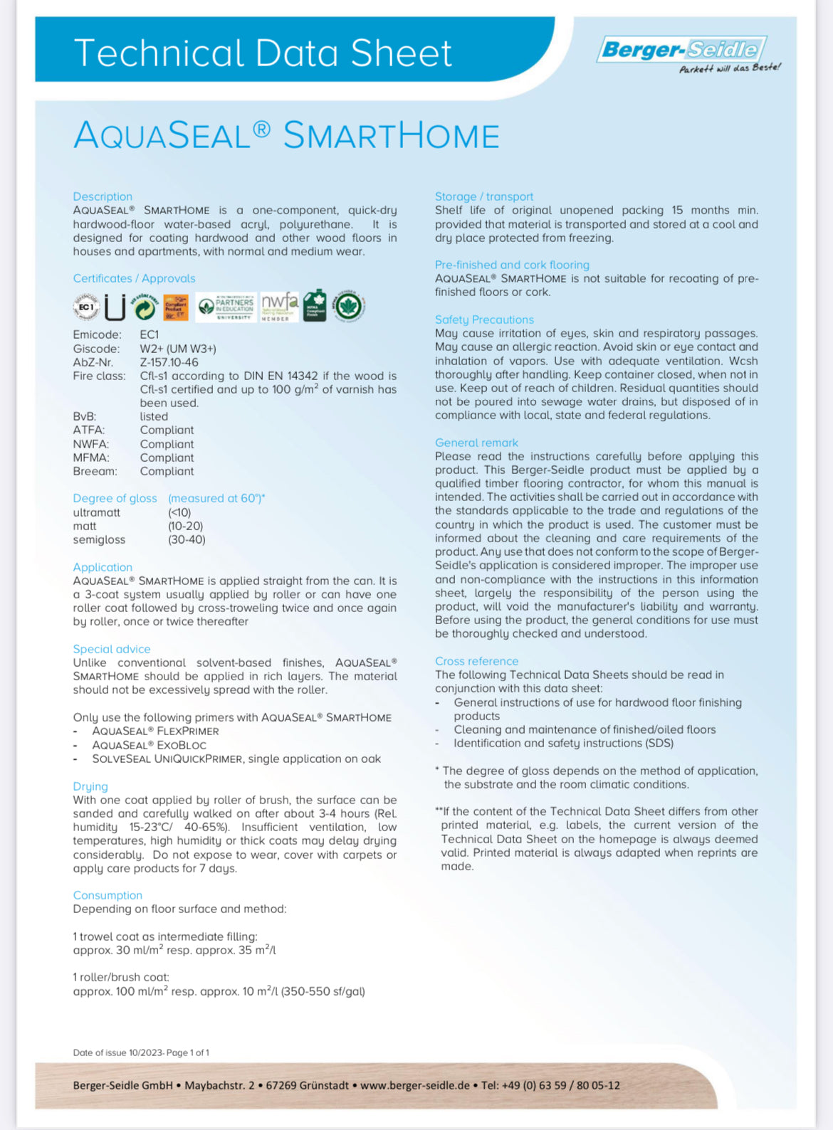 AquaSeal SmartHome is a single component water-based polyurethane which comes at a fantastic price point without compromising on quality.